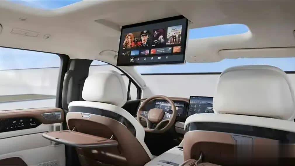后排车顶带有一块吸顶屏幕,可谓是冰箱彩电大沙发,一样不缺。除此之外,还配有双侧小桌板,这是很多同级车车所没有的,实用性极强。